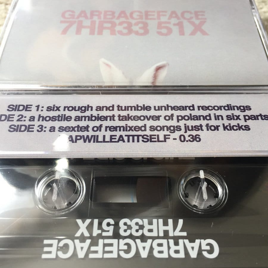 7HR33 51X M1X74P3 is available as a 320kbps MP3 download, for $3.33. 7HR33 51X M1X74P3 was also available as a limited run of 36 cassettes, not sold, but given out as party favours at garbageface's 36th birthday show.