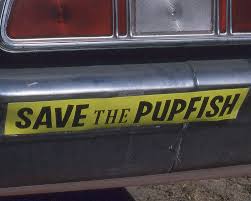 Of course, the pro-pupfish sentiment hasn't been unanimous. Probably the biggest flashpoint was the 1975 lawsuit of United States v. Cappaert. At issue was the nearby 12,000 acre cattle ranch owned by the Cappaert family, and their ability to pump groundwater for the cows they were raising for meat. The case was acrimonious and divided locals, with a local newspaper editor (!) threatening to dump pesticide into the hole (!!) to "make it a moot point." Cars with bumper stickers saying SAVE THE PUPFISH appeared alongside cars with bumper stickers saying KILL THE PUPFISH.